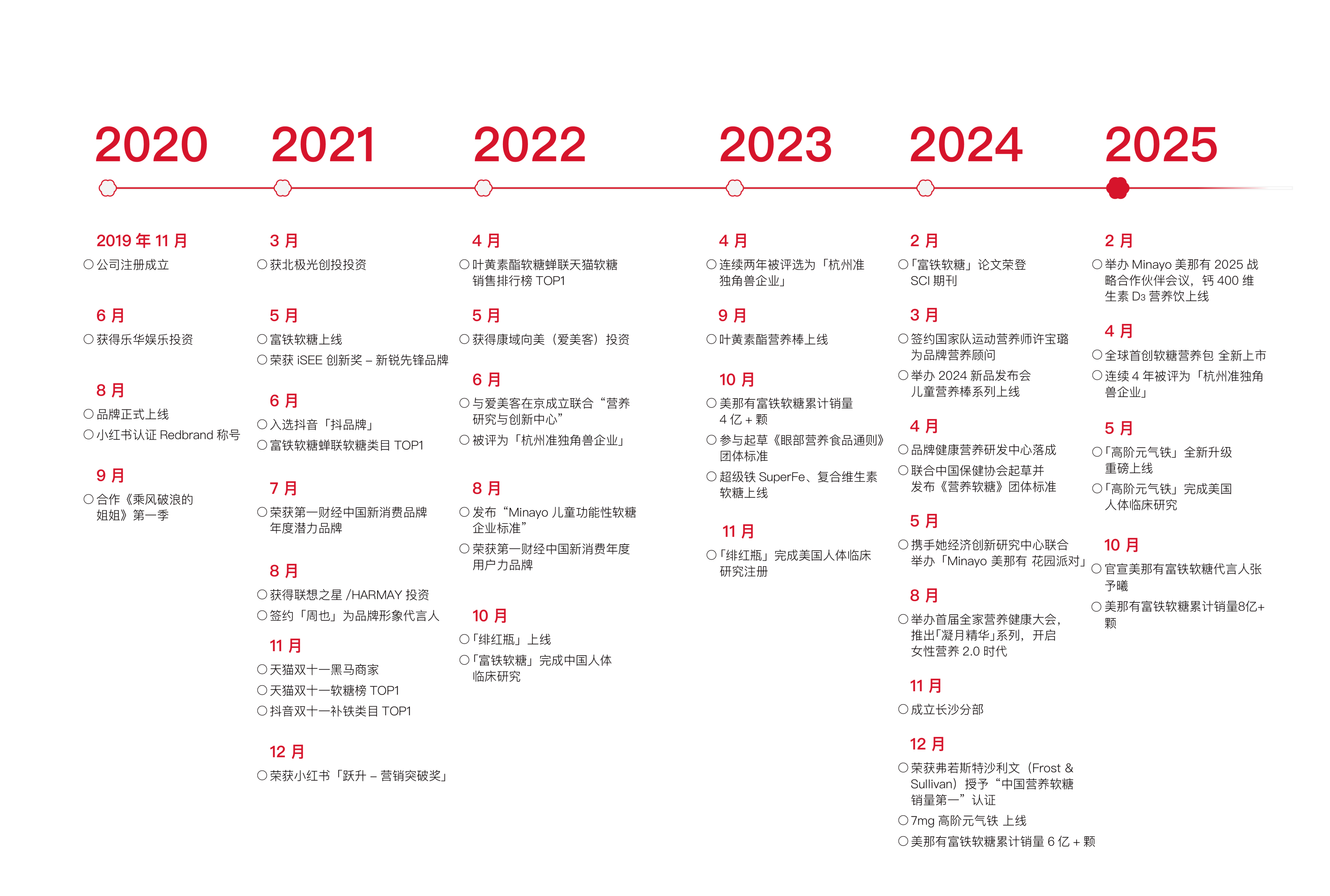 历经多年市场沉淀,目前品牌已全面覆盖线上线下全渠道,线上连续2年蝉联抖音/天猫/京东功能性软糖细分类目TOP1,富铁软糖累计销售量突破10亿颗。线下集中母婴系列,布局「补气养颜」及「成长陪伴」产品系列,爆款产品有富铁SOD酵母饮(绯红瓶)、儿童营养棒、钙400维生素D3营养饮等。